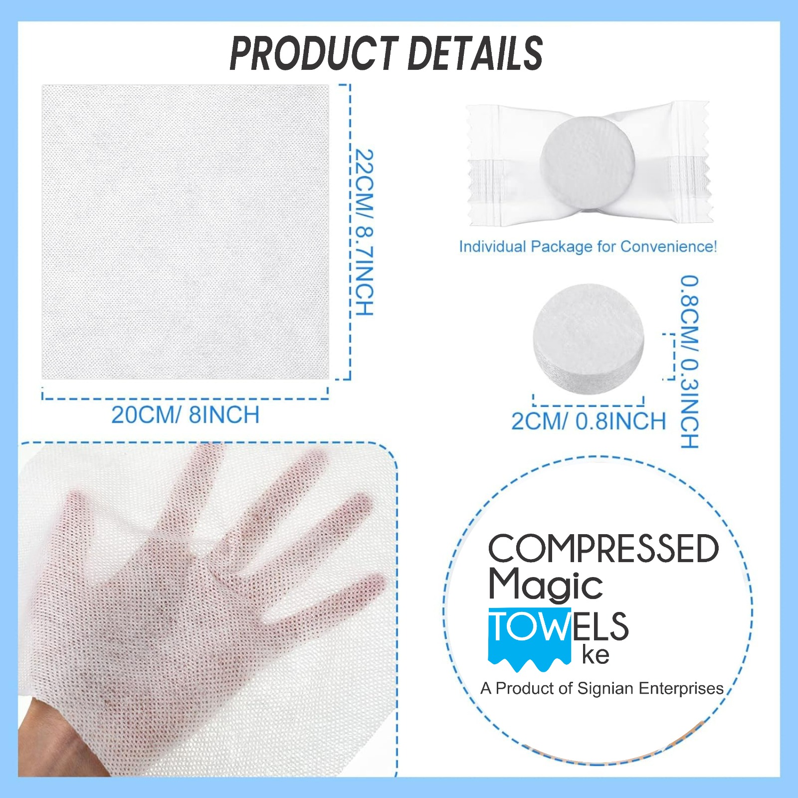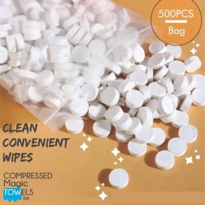Compressed magic towels are small, compact towels that come compressed into a tablet or coin shape. When exposed to water, they expand and unfold into full-sized towels.